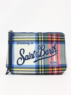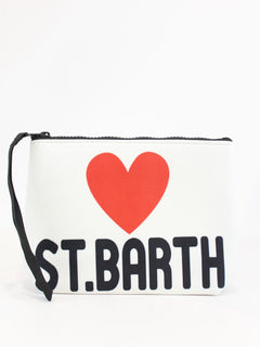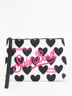 Pochette Aline cortina Mc2 Saint Barth, modello con zip, polsiera fissa e stampa cortina e piste