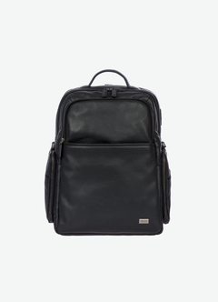 Zaino in pelle uomo Bric's, collezione Torino con doppia lavorazione in pelle una liscia e una bottalata. Tasca frontale con zip nascosta logata e tasca doppia frontale, scompartimento interno da 15.6". Adattatore USB modello A e C, colore blu