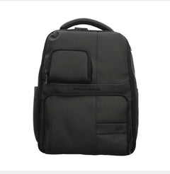 Zaino Wollem Piquadro uomo, dotato di scompartimento interno porta notebook da 14", sistema d'aggancio ai trolley con fascia, chiusura doppia lampo. Dotato di tasche porta bottiglia e porta occhiali, colore blu