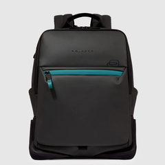 Zaino uomo Piquadro, modello con scompartimento per notebook da 14", due scomparti in tessuto idrorepellente resistente all'acqua, aggancio luce portatile da bici, tasca porta bottiglia e sistema antifrode RFID, colore blu