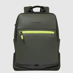 Zaino uomo Piquadro, modello con scompartimento per notebook da 14", due scomparti in tessuto idrorepellente resistente all'acqua, aggancio luce portatile da bici, tasca porta bottiglia e sistema antifrode RFID, colore nero