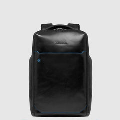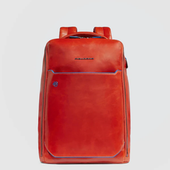 Zaino Piquadro uomo, modello linea B2 in pelle liscia con inserti in contrasto. Scompartimento porta PC da 14", protezione antiurto e anti frode RFID, dotato di cavo antifurto, tasca per power bank e porta occhiali, manici fissi, colore blu