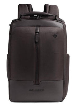 Zaino da Viaggio Piquadro, modello in tessuto riciclato, con scompartimento in pelle porta Pc e Ipad, due scompertimenti con tasche airpods, protezione anti urto RFID, colore nero