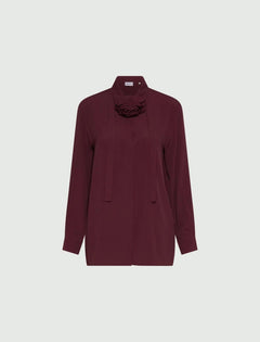 Camicia in crepe de chine misto seta, fit regolare, collo a camicia, abbottonatura nascosta, nastro con dettaglio floreale, colore corda