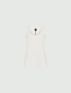 Top smanicato Marella art. 365, realizzato in georgette doppiata in satin, linea dritta e smanicata, scollo rotondo, spacchi laterali con retro più lungo, colore nero