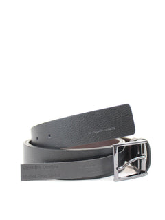 Cintura uomo Piquadro, modello reversibile realizzata in pelle con fibbia ad ardiglione, colore blu e nero