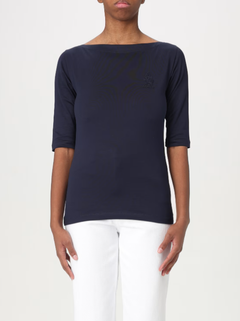 T-shirt con scollo a barchetta, slim fit, maniche a tre quarti, logo ricamato sul petto, colore bianco