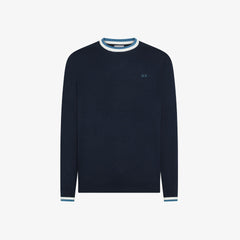 Maglia in cotone Sun68, modello girocollo con righe a contrasto, polsi in contrasto, logo ricamato sul petto, colore bianco