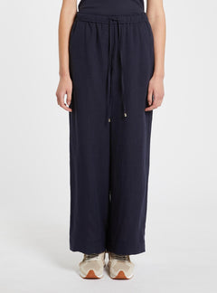 Pantalone ampio in lino Marella, fit dritto, chiusura con coulisse in vita, tasche laterali alla francese e posteriori a filetto, colore giallo banana