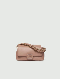 Borsa Le Muse Small in tessuto effetto martellato, leggermente imbottito, manico intrecciato con catena in metallo, fodera in tessuto scamosciato, portata a mano e cross body con tracolla rimovibile, colore marrone