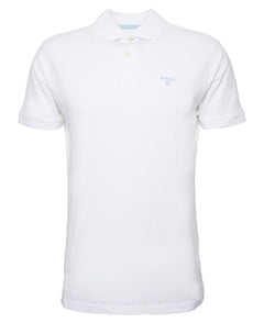 Polo sports Barbour uomo, modello con collo con bottoncini, maniche corte. Dettaglio con logo ricamato sul petto in contrasto, colore blu