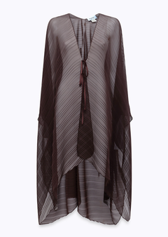 Maxi poncho Blugirl donna, modello in tulle plissè da annodare con laccetti sul davanti, color animalier
