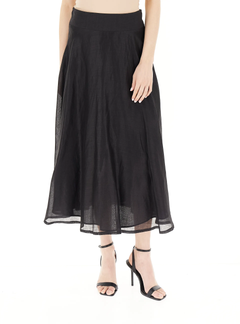 Gonna in tela di puro ramiè, fit svasato, apertura posteriore con zip, modello foderato, colore bordeaux