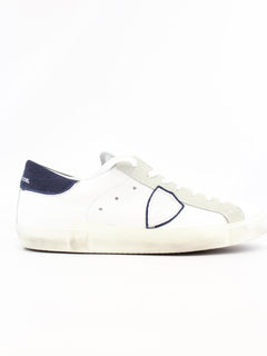 Sneakers Philippe Model uomo, modello street heritage, tomaia in pelle di vitello bianco con finitura used, suola in gomma, colore multicolor e retro nero