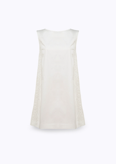 Abito corto in cotone stretch con dettagli in pizzo smerlato in tono, collo rotondo, chiusura sul retro, colore marrone