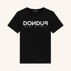 T-shirt girocollo Dondup, modello girocollo regular fit, maniche corte con stampa logo centrale, colore bianco